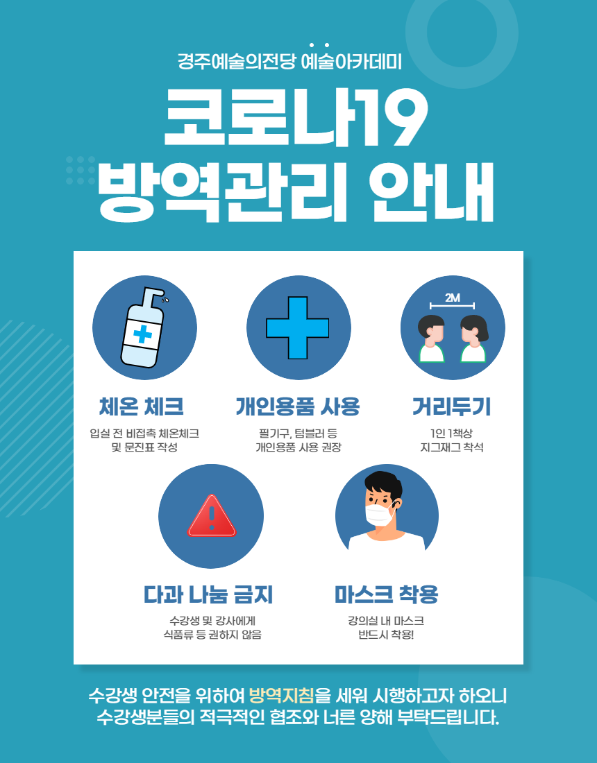 - 공휴일, 임시공휴일은 휴강입니다.