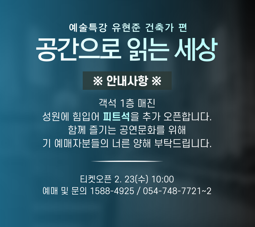 예술특강 유현준편 피트석 추가 오픈